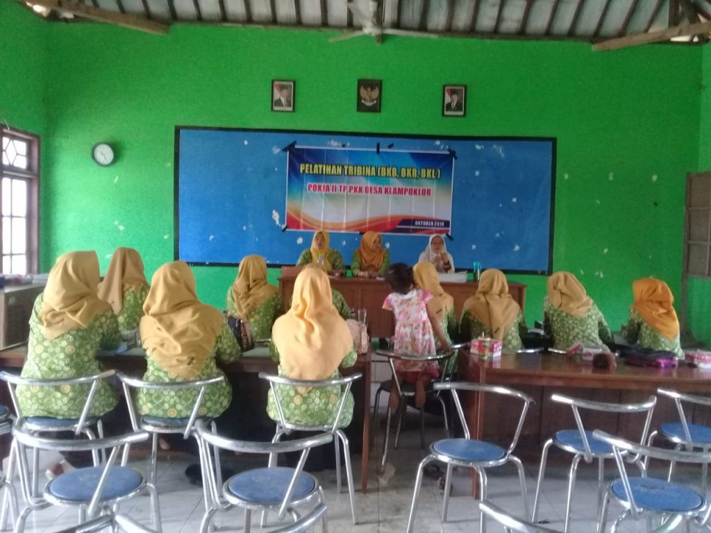 Jumat tanggal 11 oktober 2019 diadakan Pelatihan Kader Tribina (BKB,BKR, BKL) bertempat di Balai Desa Klampoklor Kecamatan Kebonagung. Kegiatan dibuka oleh Kepala Desa Klampoklor, Bapak Sofin Nuha dan dihadiri oleh Ketua TP PKK Desa, Sekretaris, Bendahara serta kader-kader tribina, dengan narasumber PLKB Kecamatan Kebonagung yaitu Jatu Pramonowati, S.Sos