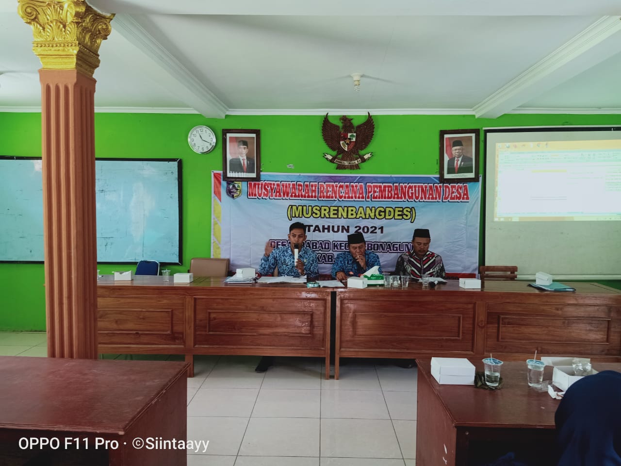 Kasi Tata Pemerintah Kecamatan Kebonagung Bapak Suradi, SIP, MH membuka secara resmi kegiatan Musyawarah Rencana Pembangunan (Musrenbang) Desa Babad Tahun 2020 untuk perencanaan Tahun 2021 serta Penyusunan RPJMDes Tahun 2021-2026 di Balai Desa Babad. Senin (17/02/2020)