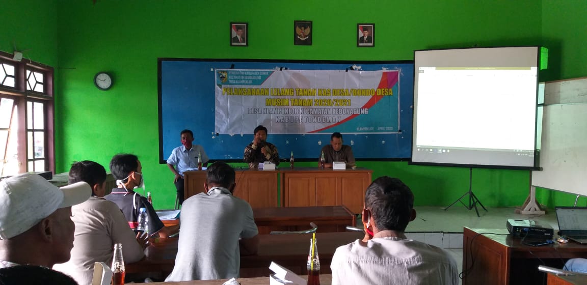 Sabtu (18/04/2020) Bertempat di Balai Desa Klampoklor dilaksanakan lelang “bondo” desa untuk masa tanam 2020/2021. Hadir dalam giat tersebut Perangkat Desa Klampoklor, Camat Kebonagung Bapak Haryoto, MH, Kasi Tata Pemerintah Kecamatan Kebonagung Bapak Suradi, MH, anggota polsek Kebonagung beserta peserta lelang Desa Klampoklor.
