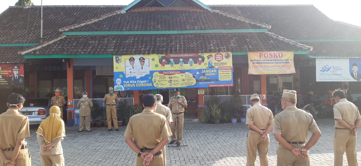 Senin (13/07/2020) telah dilaksanakan giat rutin yakni apel bersama di halaman kantor Camat Kebonagung. Hadir sebagai peserta apel yaitu karyawan karyawati dinas/instansi di lingkungan Kecamatan Kebonagung beserta Sekretaris Desa se Kecamatan Kebonagung. Bertindak sebagai pemimpin apel yaitu Camat Kebongung Bapak Drs. Haryoto, MH. Apel dilaksanakan pukul 07.30 WIB. Usai mengikuti apel, pejabat struktural beserta sekdes mengikuti briefing di Ruang Pertemuan Kecamatan Kebonagung.