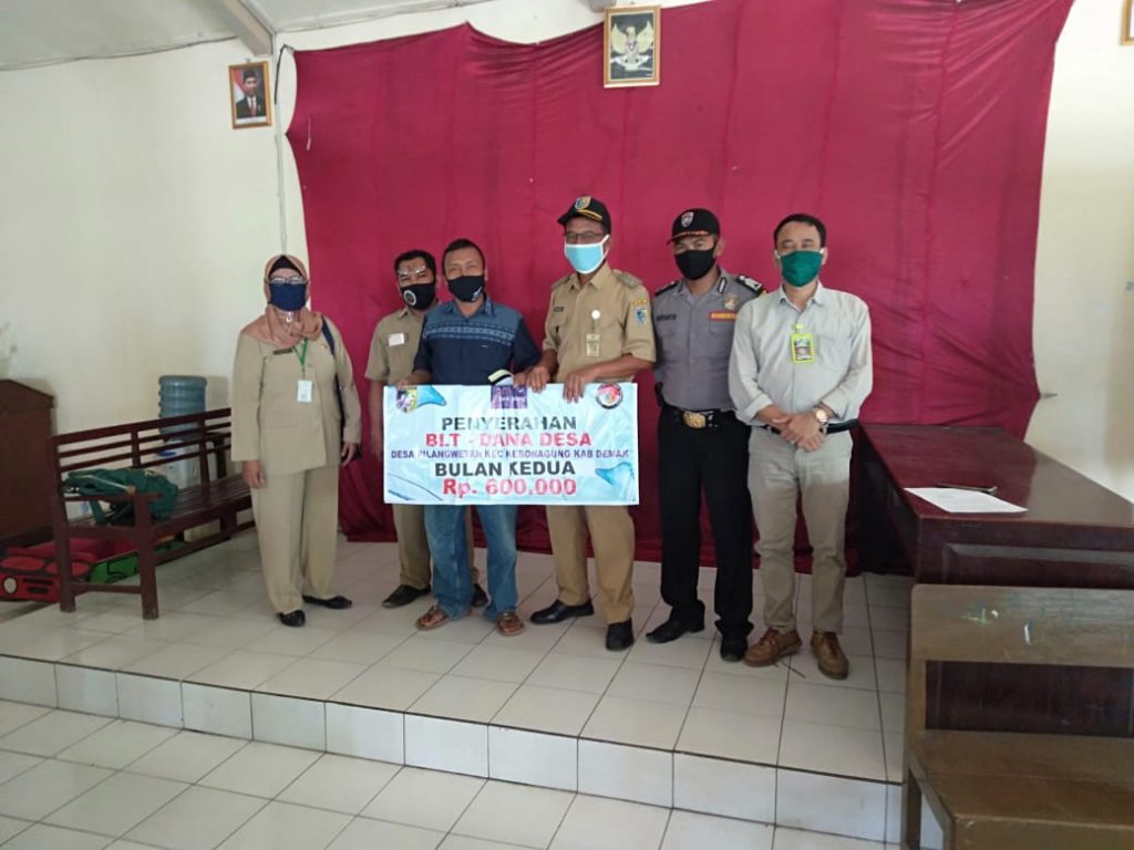 Sebanyak 111 Kepala Keluarga (KK) di Desa Pilangwetan Kecamatan Kebonagung Kabupaten Demak, menerima program Bantuan Langsung Tunai Dana Desa (BLT-DD) yang terkena dampak Covid-19. Penyerahan BLT-DD dilakukan langsung oleh Pemerintah Desa Pilangwetan di Balai Desa setempat, Senin (20/07). Penyaluran BLT Dana Desa dilaksanakan dengan menyesuaikan protokol kesehatan yakni memakai masker, jaga jarak, dan cuci tangan sebelum dan sesudah kegiatan.