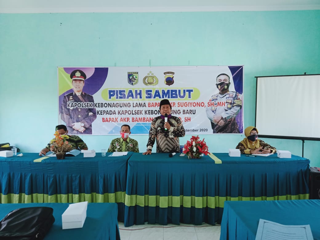 Ditengah Pandemi wabah virus Corona Covid-19, Pisah Sambut Kapolsek Kebonagung dilaksanakan hari ini, Rabu (30/09/2020) dilaksanakan sangat sederhana dan menjaga jarak serta protokol dalam hal mencegah penyebaran virus Corona Covid-19.