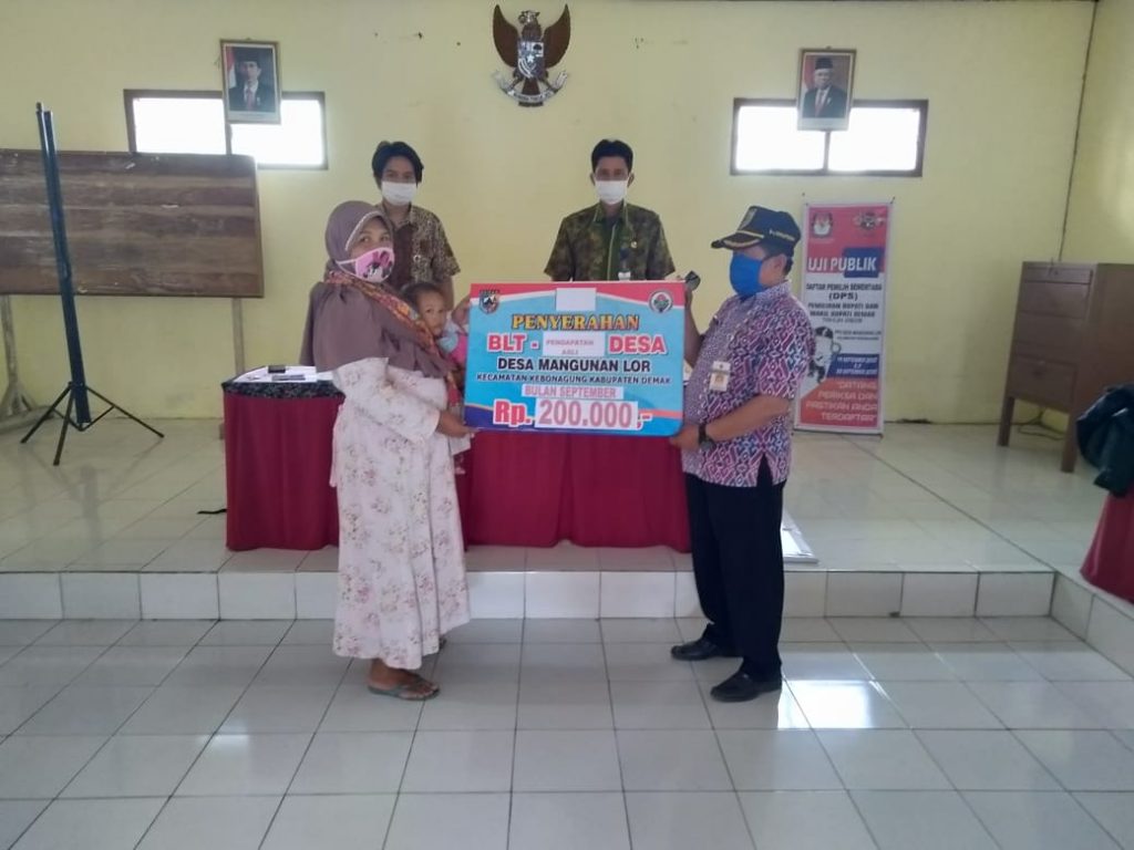 Selasa (19/10/2020) Bertempat di Balai Desa Mangunanlor, pukul 09.45 WIB, telah dilaksanakan kegiatan Penyaluran Bantuan Langsung Tunai (BLT) yang bersumber dari Pendapatan Asli Desa (PAD) selama 2 bulanTahun 2020 yang terdampak COVID-19. Hadir dalam kegiatan tersebut, Kepala Desa Mangunanlor; Staf Kecamatan; Anggota BPD; Bhabinkamtibmas & Babinsa; Perangkat Desa; Pendamping Desa; serta Warga penerima BLT PAD.