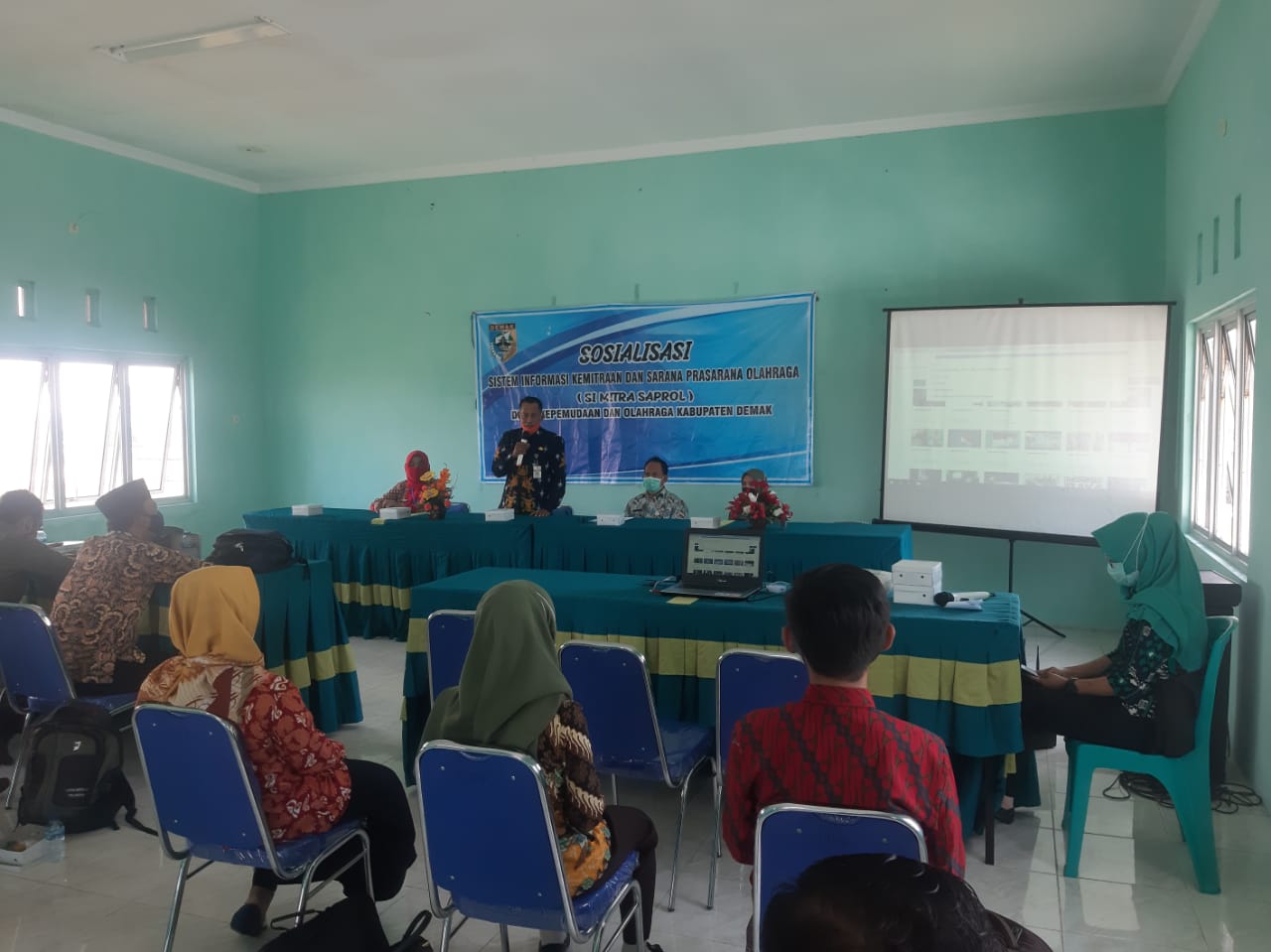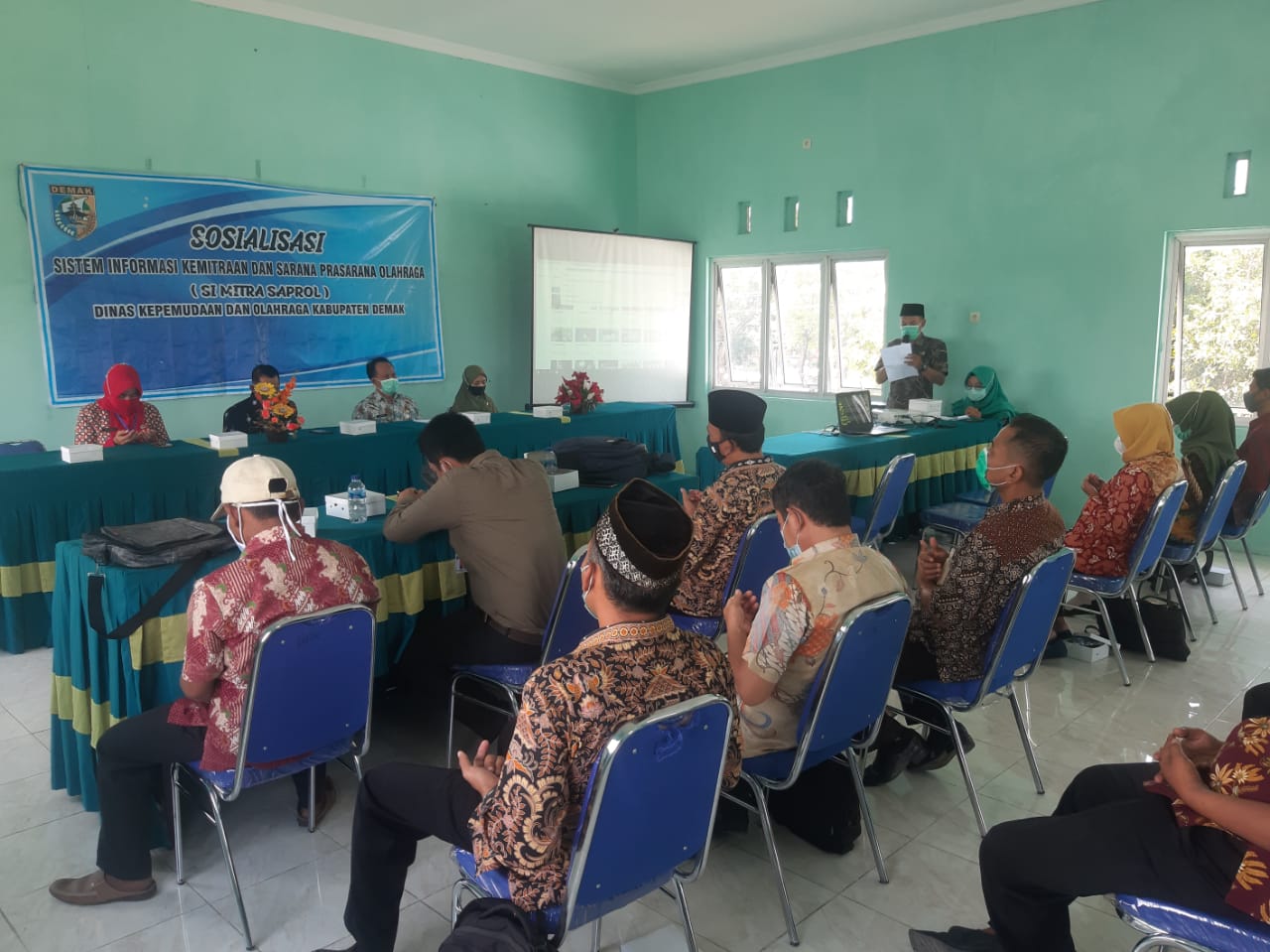 Kamis, 19 November 2020 Bertempat di ruang pertemuan UPK Kecamatan Kebonagung, telah dilaksanakan kegiatan Sosialisasi SI MITRA SAPROL (Sistem Informasi Kemitraan dan Sarana Prasarana Olahraga) oleh Dinas Kepemudaan dan Olah Raga Kabupaten Demak. Hadir dalam giat tersebut yakni Kasi Tata Pemerintahan Bapak Suradi MH, Bapak Sujarwo & tim sebagai narasumber beserta admin aplikasi dari masing-masing desa. Tujuan diadakannya kegiatan ini yaitu dalam rangka mendukung program Demak Satu Data bidang olehraga.